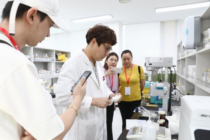 | 7月25日,韩国护肤品牌Cell Fusion C邀请全球购买手至产品研发中心,针对产品成分及质量深入讲解,买手表示收获良多。【图片=淘宝全球购】 |