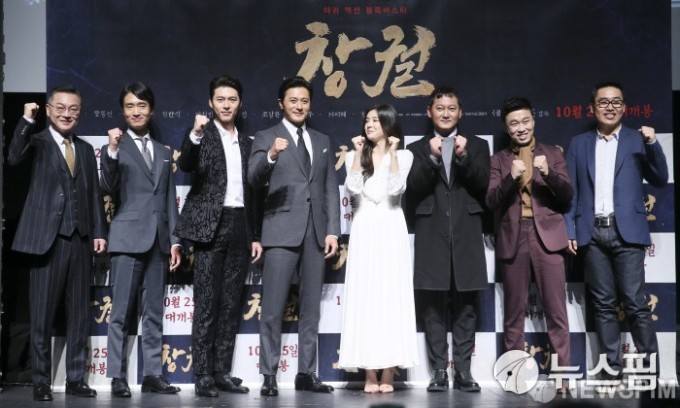 韩国电影《猖獗》举行制作发布会,演员张东健、玄彬、李善彬、赵宇镇及其他电影主演出席。