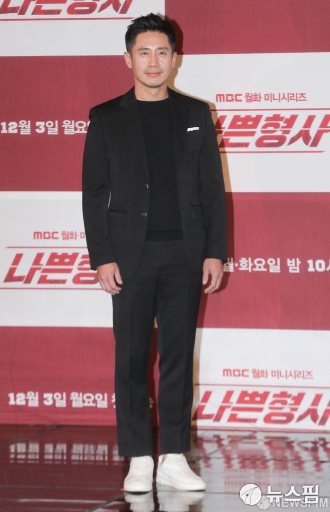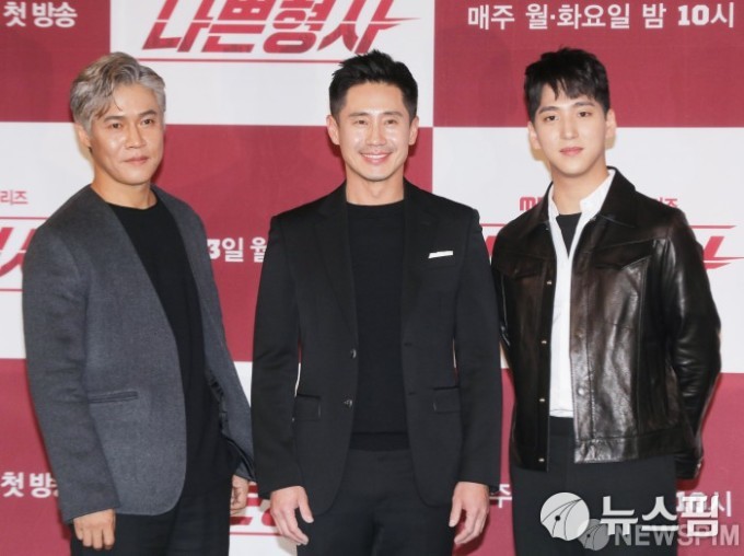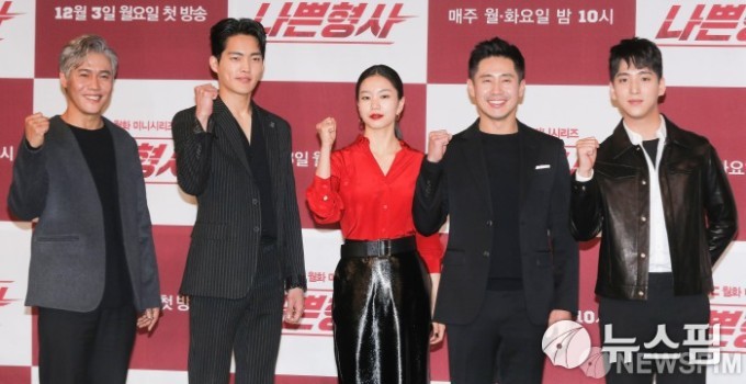 韩国MBC全新月火剧《坏刑警》制作发布会29日在首尔举行,演员申河均、李雪、车善玗(BARO)、朴浩山、金建宇出席。