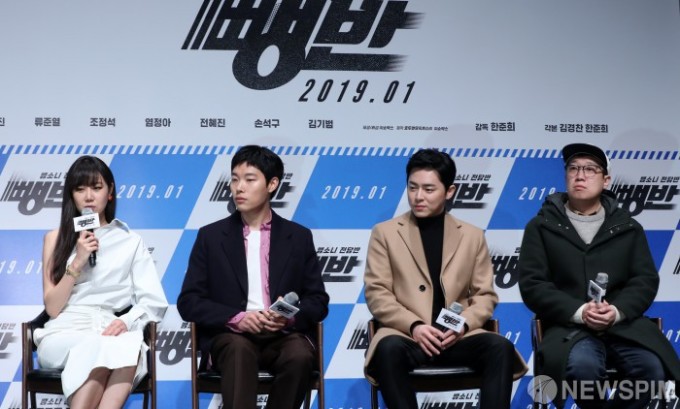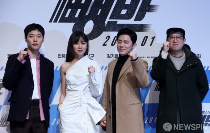 韩国电影《逃组》制作发布会20日在首尔举行,主演曹政奭、孔孝真和柳俊烈出席。