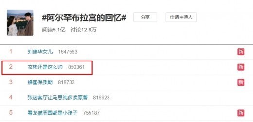 《阿尔罕布拉宫的回忆》虽未在中国播出,但有关该剧的关键词却在微博引发粉丝们的热议。截至5日,“阿尔罕布拉宫的回忆”关键词阅读量突破5亿,“玄彬还是这么帅”也在热搜榜位居第2位。