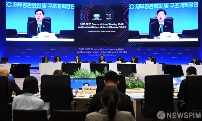 图为21日,韩国副总理兼企划财政部长官具润哲出席在仁川中区举行的APEC财长会议并致辞。【图片=纽斯频通讯社】 |