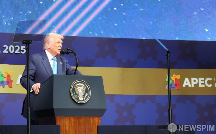 特朗普29日下午在庆州艺术殿堂举行的APEC工商领导人会议主旨演讲中表示:"韩国已成为工业强国并实现持续的民主化。全世界都在研究和学习韩国的发展与成功,虽然大家都想成为像韩国一样的国家,但恐怕难以解开其成功的秘诀。"