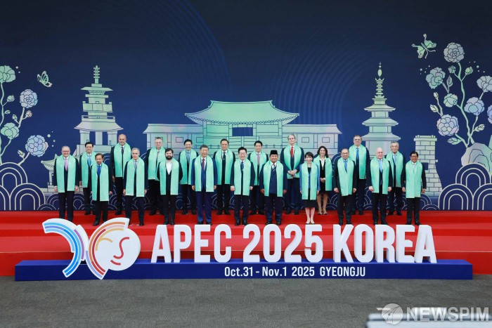 出席APEC庆州峰会的韩国总统李在明及各国领导人、代表1日举行第二场会议并正式通过《庆州宣言》文件。