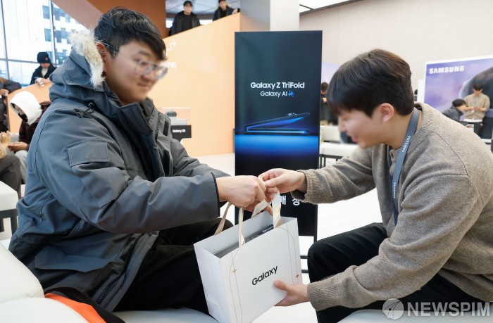 纽斯频通讯社首尔12月12日电 韩国三星电子首款三折叠手机Galaxy Z Tri-Fold于12日正式在本土发售。