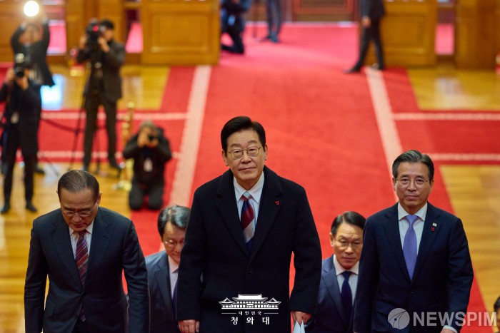 | 图为韩国总统李在明12月29日在总统府青瓦台上班。【图片=青瓦台提供】 |