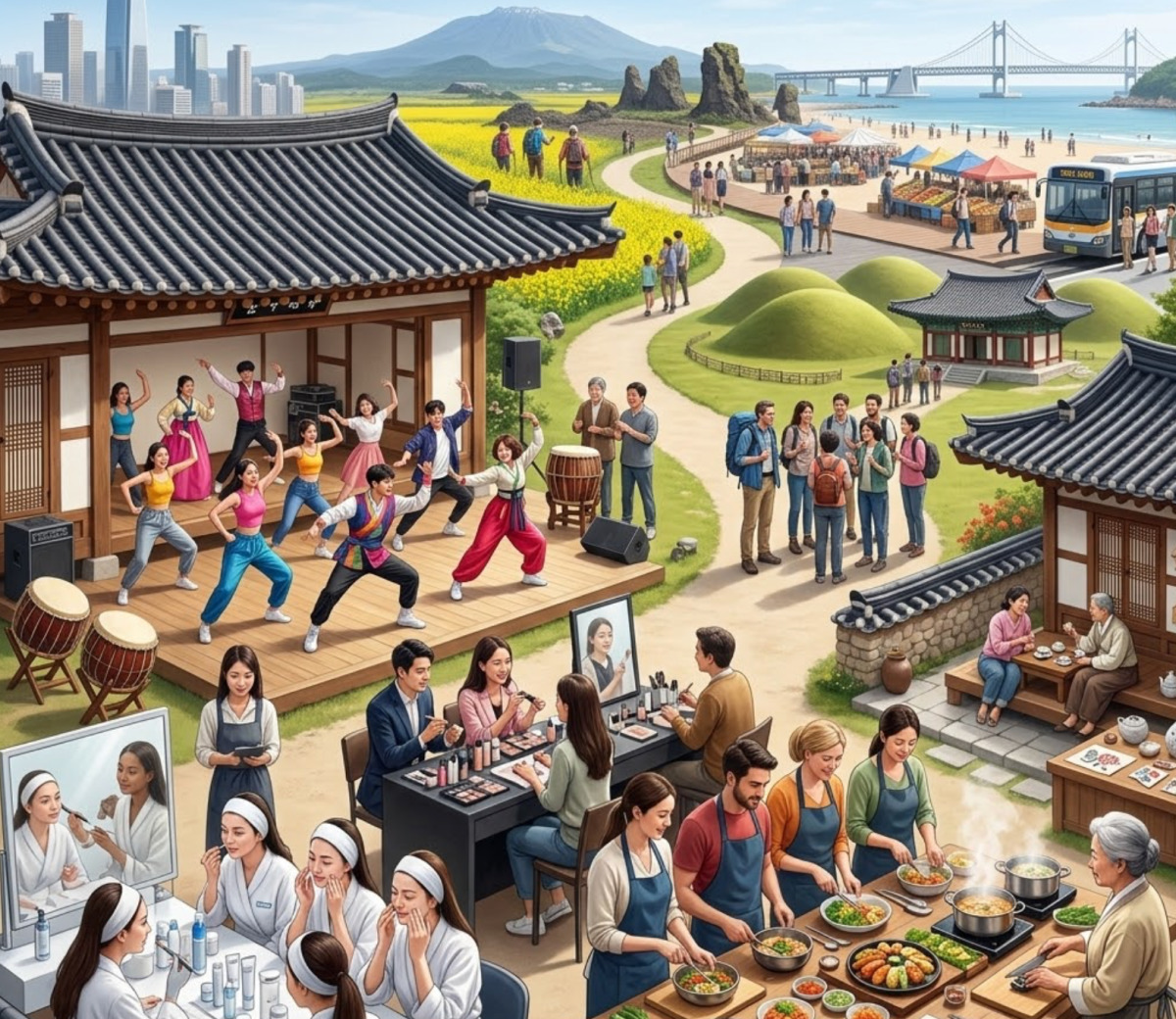 值得关注的是,音乐舞蹈课(20%)、化妆课(18%)、韩餐课(16%)等体验型旅游项目人气急剧上升。说明外国游客超越单纯美容医疗服务,直接学习韩国人生活方式、深入探索文化的"探索游"正成为新的主流趋势。